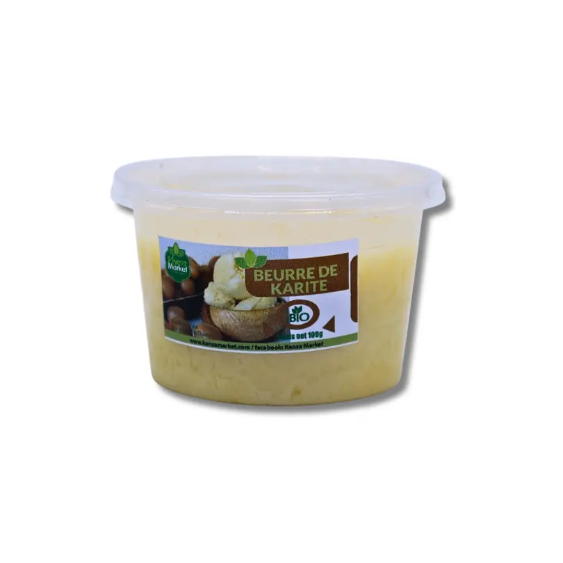 Beurre de karité 100 % naturel, idéal pour nourrir, protéger et réparer la peau et les cheveux secs ou abîmés.