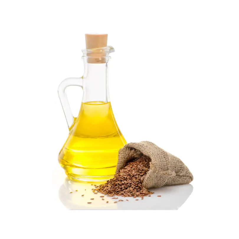 Huile de lin naturelle, riche en oméga-3 et en vitamine E, idéale pour nourrir et réparer les cheveux et la peau en profondeur.