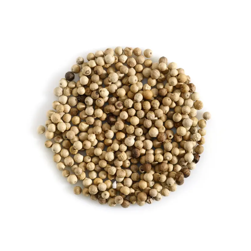 Contrairement au poivre noir, le poivre blanc est obtenu en enlevant la peau de la baie mûre après trempage, ce qui lui confère une saveur plus douce, moins piquante et des notes boisées et fruitées très appréciées.